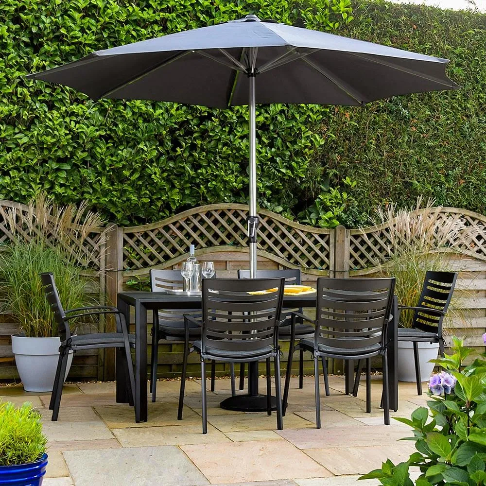 6 Seat Rectangular Table Garden Dining Set CarbonPewter