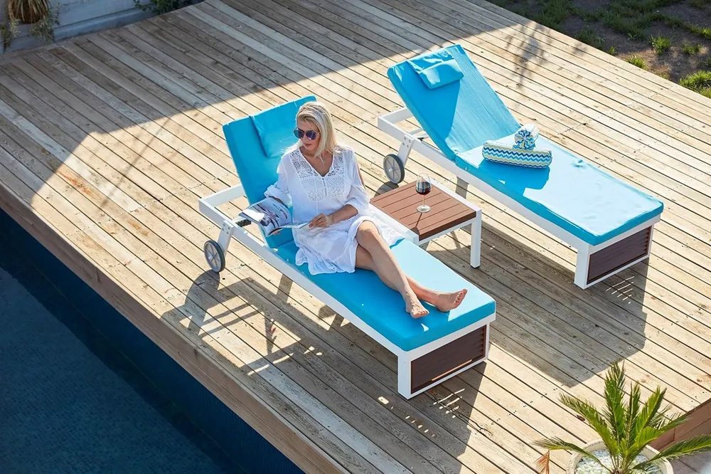 All parts of the Alezia model chaise longue are made of aluminum. It is painted with white color electrostatic powder paint. It has wheels. The stand is aluminum and is included in the price.... Read More