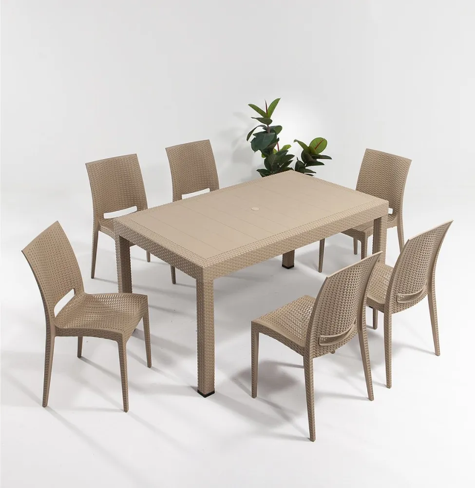 Product Dimensions Width Height Depth Table 90 cm 75 cm 150 cm 6*Chair 43 cm 87 cm 44 cm Rattan large table set consists of a table and six chairs. Products made of unbreakable plastic will ... Read More